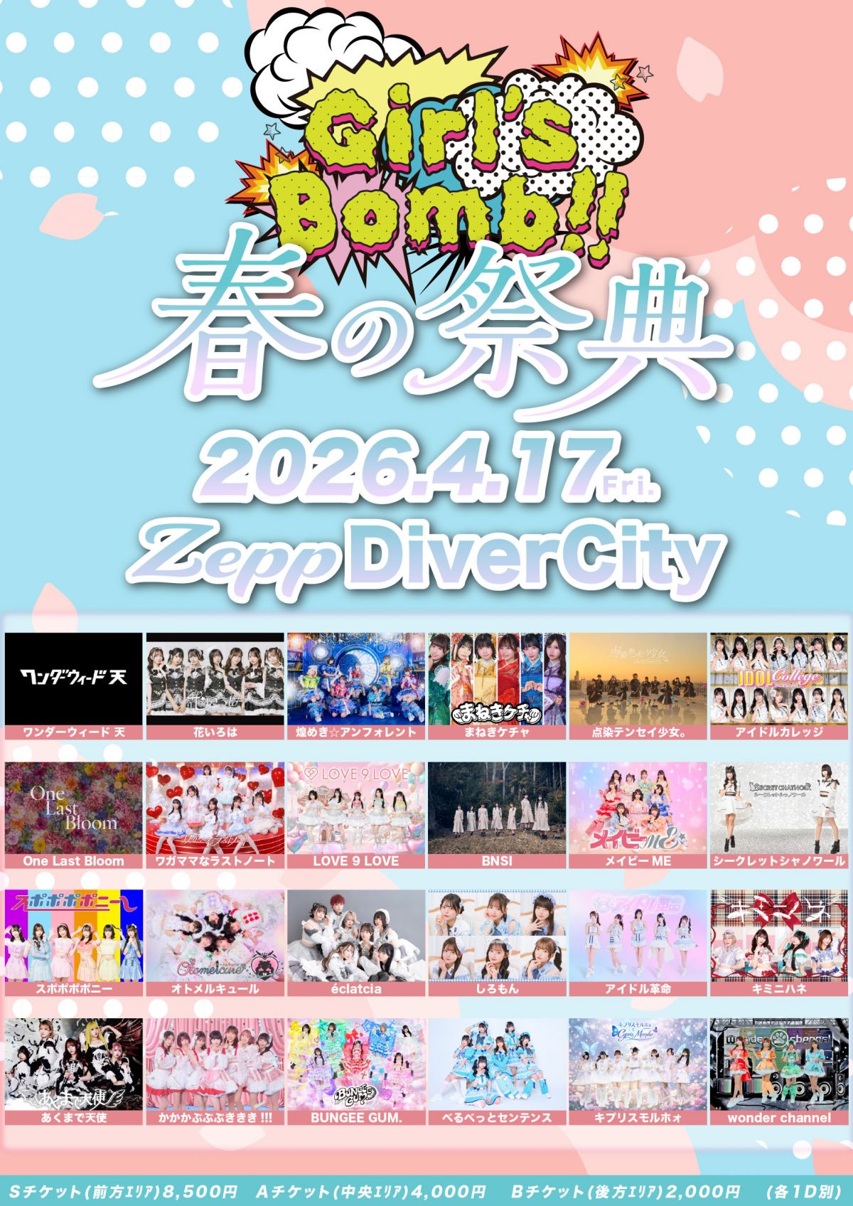 ワンダーウィード天/花いろは/煌めき☆アンフォレント/まねきケチャ/点染テンセイ少女。/アイドルカレッジ/One Last Bloom/ワガママなラストノート/LOVE 9 LOVE/BNSI/メイビーME/シークレットシャノワール/スポポポポニー/オトメルキュール/éclatcia/しろもん/アイドル革命/キミニハネ/あくまで天使/かかかぶぶぶききき!!! /BUNGEE GUM./べるべっとセンテンス/キプリスモルホォ/wonder channel -